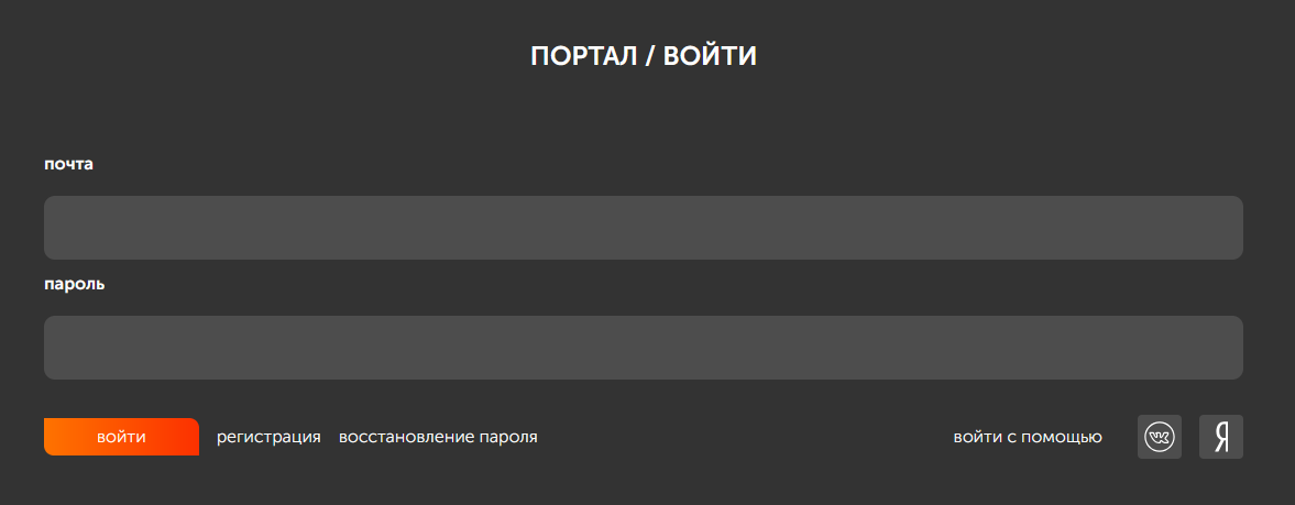 Также можно зайти на портал, используя учетную запись социальных сетей Яндекс или Vk, нажав на соответствующую иконку рядом с надписью «войти с помощью». Вы будете переадресованы на страницу сервиса, где нужно будет подтвердить аутентификацию. В данном случае регистрация на портале не является обязательной(будет использована электронная почта, указанная в выбранном сервисе). Если у вас ранее была учетная запись на нашем портале и вы вошли с помощью социальной сети, то пароль от этой учетной записи, в целях безопасности, будет сброшен. Вы можете позже задать его в профиле или и далее пользоваться авторизацией через соц. сети.