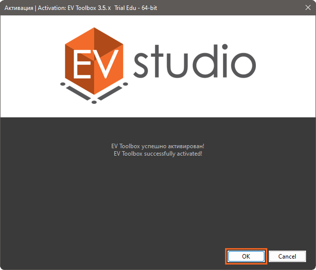 После установки программы вы можете запустить конструктор EV Toolbox на вашем ПК. При первом запуске программы будет показано окно активации. Введите ваш ключ активации и нажмите «ОК».