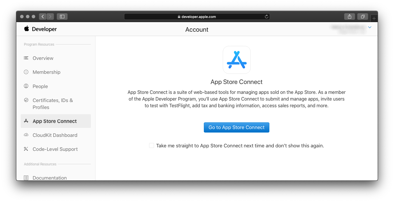 Для загрузки iOS-приложения в AppStore необходимо создать запись в App Store Connect. Для этого перейдите в личный кабинет разработчика и в меню слева выберите App Store Connect. После перехода на главую страницу AppStore Connect, выберите вкладку My Apps. Далее в верхнем углу нажмите кнопку +, выберите New app и следуйте дальнейшим инструкциям на сайте.