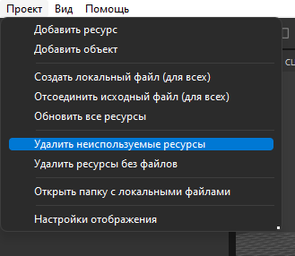 В главном меню выбрать пункт Проект > Удалить неиспользуемые ресурсы.